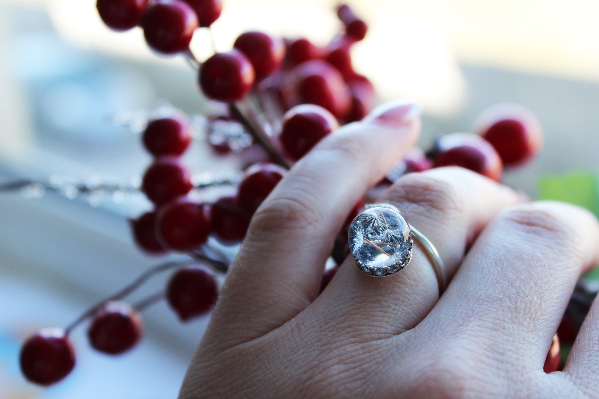 This handcrafted real flower resin ring is a charming reminder to make a wish, follow your dreams, and carry a piece of nature with you wherever you go.