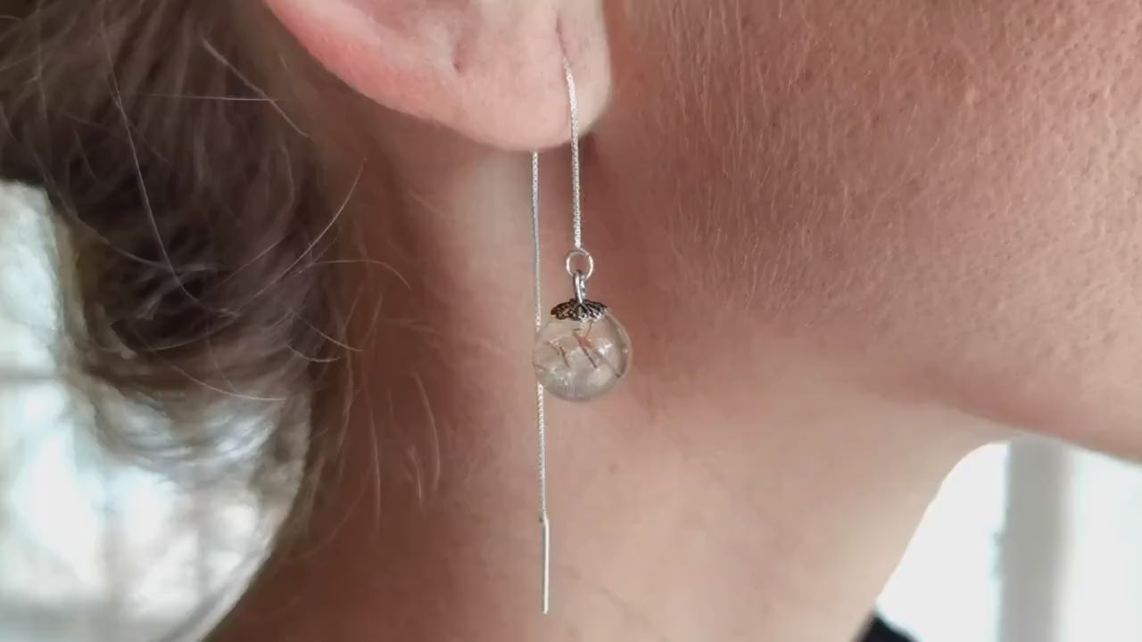 These beautiful and delicate dandelion earrings feature real dandelion seeds preserved inside crystal-clear epoxy resin spheres. Light, airy, and full of symbolism, they represent hope, dreams, wishes, and new beginnings, making them a meaningful gift for nature lovers and romantics.