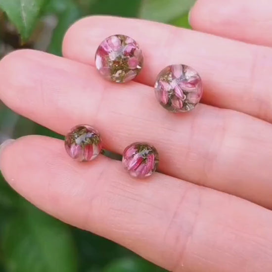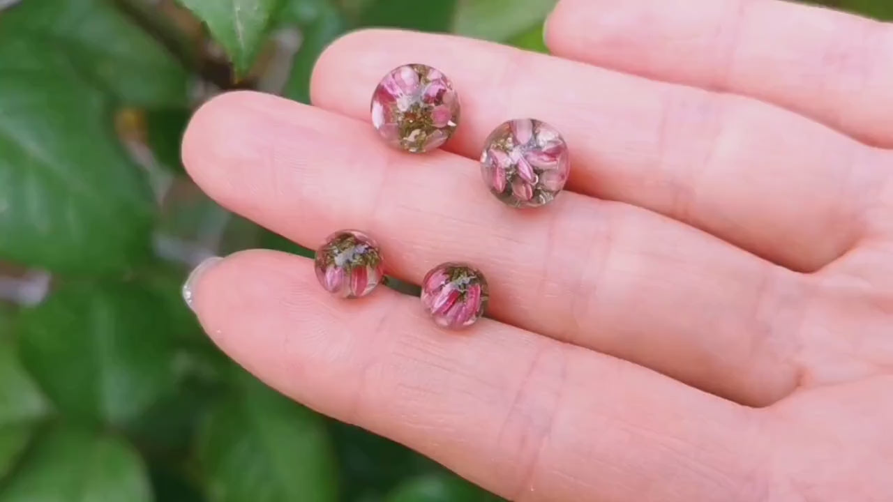 Every piece is carefully handcrafted, turning real pressed flowers into miniature terrariums you can wear every day. The smooth resin spheres are paired with high-quality sterling silver studs for comfort and durability.